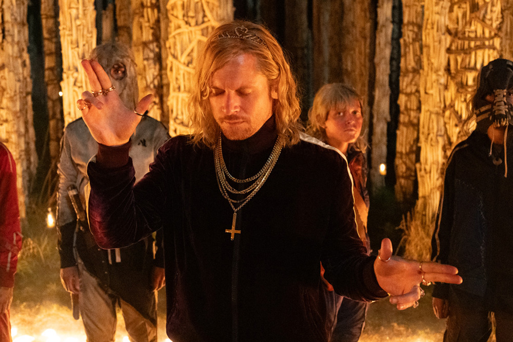 Picking up right where the last installment left off, Spike (Alfie Williams) has been "rescued" (or maybe just "adopted by way of circumstance") by the Fingers, a violent gang of social miscreants donning colorful tracksuits and peroxide-blonde wigs led by their psychopathic Satan worshipper "Sir Lord" Jimmy Crystal (Jack O'Connell), who is on an absolute heater right now. For those of you who haven't seen a film in this franchise before, don't fret, it is reasonable to feel uncomfortable and confused. You'll remember Sir Jimmy from the cold open of 28 Years Later as the young boy who is given a crucifix necklace by his minister father before he is attacked during the initial outbreak of the Rage Virus by the Infected. Now, after 28 years (aha!), with his necklace inverted and his psyche severely corrupted, he leads the Fingers with sadistic rage and forces Spike to kill another Jimmy or be killed by way of a surivival of the fittest death match. The vicious opening sequence sets the tone and establishes the stakes for the rest of the film – if you're new to all this or in case you needed a reminder, the unforgiving world these characters live in is naueastingly brutal and full of gore.